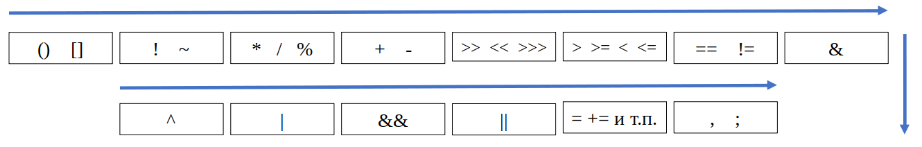 Приоритет операторов (от высшего к низшему):